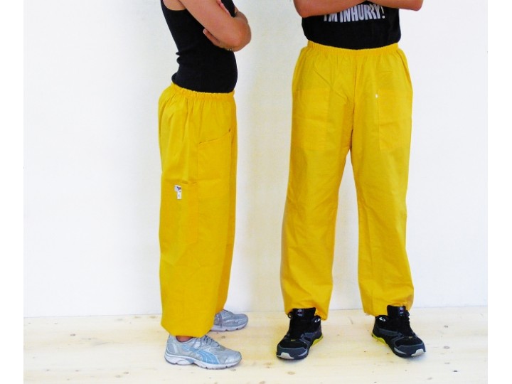 Pantaloni da apicoltore, in tela di cotone, adatti ad abbinamento con i giubbotti e i camiciotti. Completi di elastico in cintura e alle caviglie e ampie tasche.