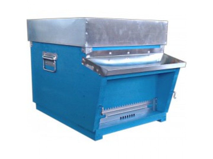 Nido con perimetro in abete rosso listellare, fondo avvitato, rete anti varroa zincata incassata, vassoio zincato, distanziatori zincati dentati 10 favi, maniglie zincate imbullonate, angolari e porticina zincati di qualità avvitati, vestibolo con tettoietta zincata e mascherina trasporto in plastica, coprifavo, tetto a scatola . Verniciatura all'acqua esenti da metalli pesanti