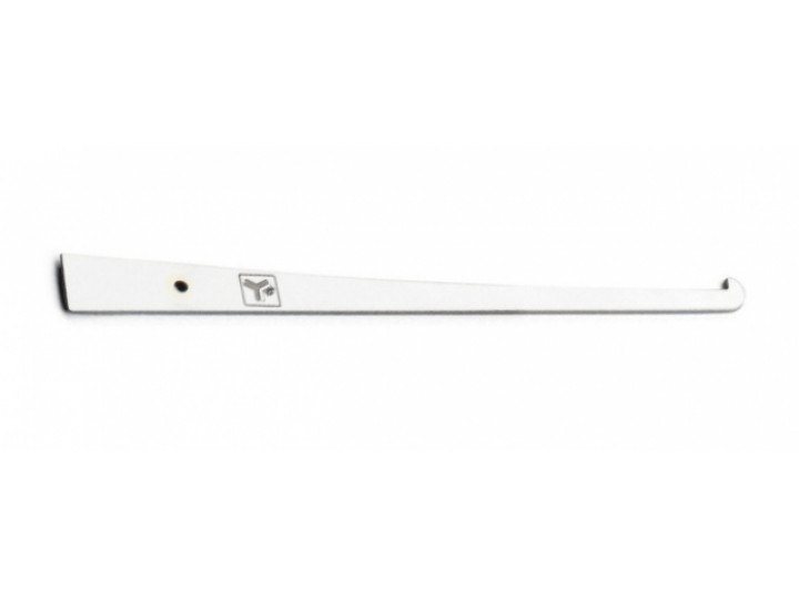 Leva lunga in acciaio inox, con scalpello su di una estremità e gancio stacca favi sull'altra.